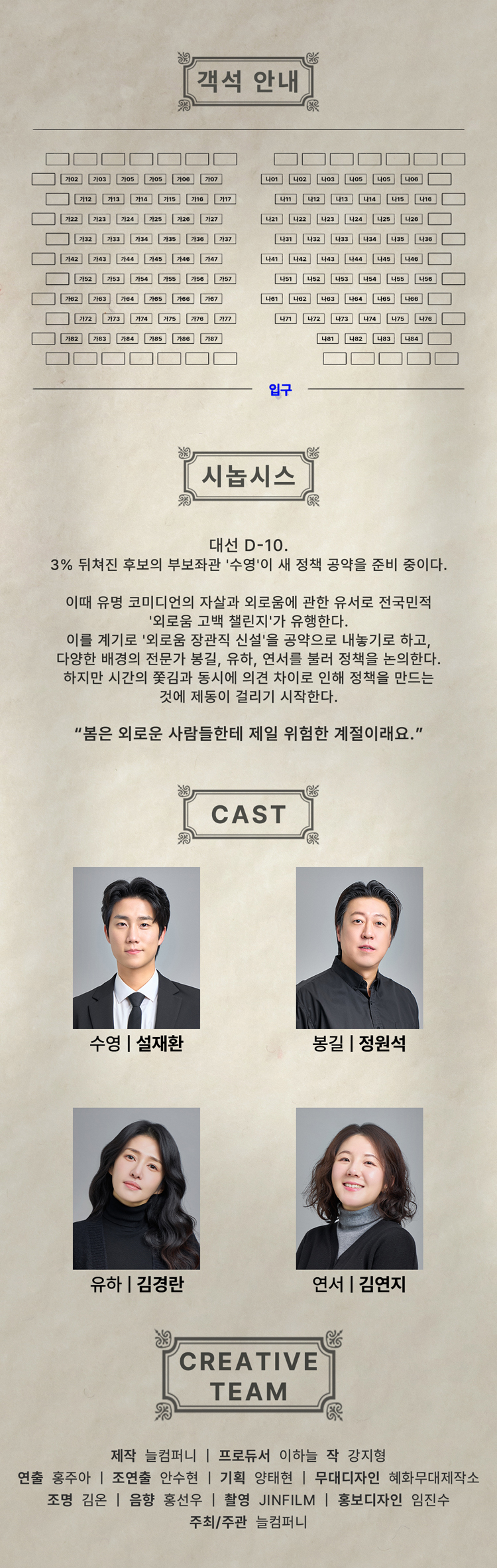 무대디자인 혜화무대제작소 | 조명 김은 | 음향 홍선우 | 쵤영 JINFILM | 홍보디자인 엄진수