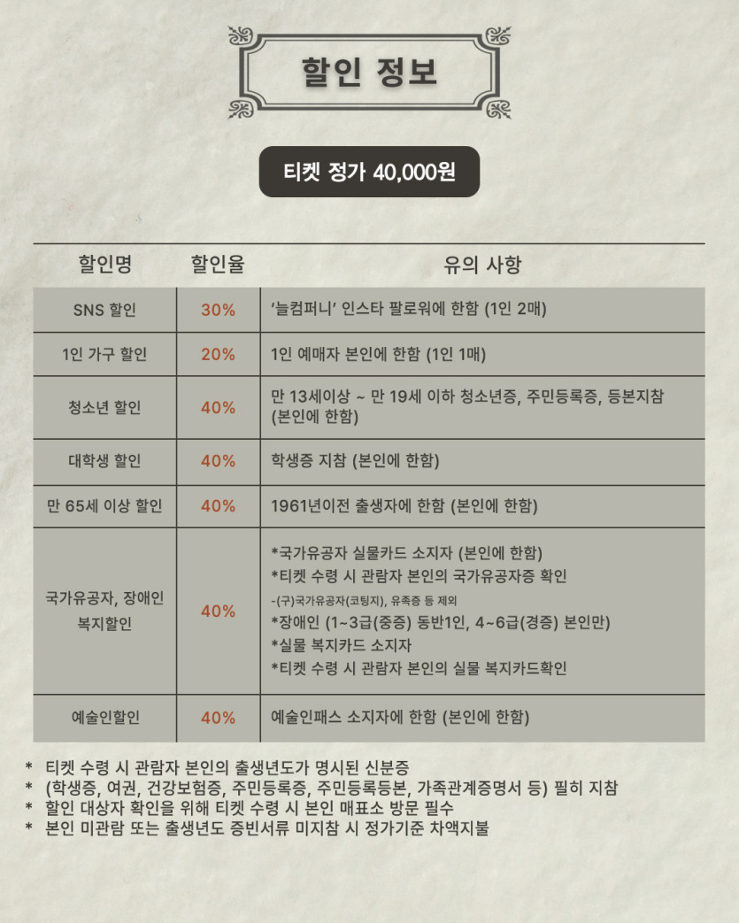 평일 19:30 | 토 13시, 16시, 19시 | 일 14시, 17시